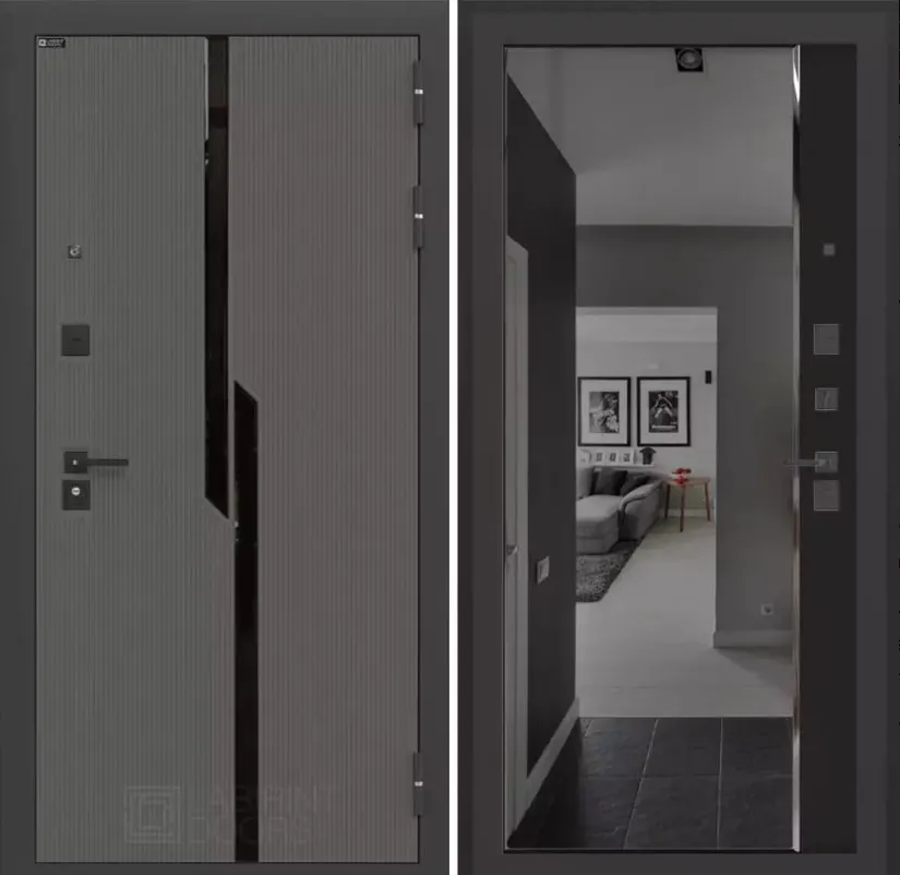 Покраска металла Муар черный Декоративная MDF панель 10 мм с черным стеклом фацет, цвет "Лофт графит" с металлическим наличником